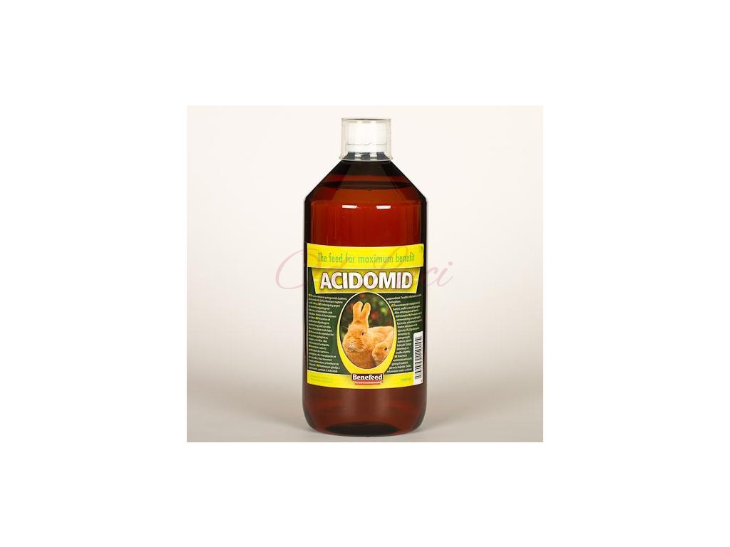 ACIDOMID® obsahuje kompletně všechny organické kyseliny důležité pro zažívání a trávení. Organické kyseliny okyselují napájecí vodu, účinně ji také konzervují a stabilizují. Je tak výrazně omezováno nežádoucí množení patogenních bakterií a plísní v napájecí vodě, napáječkách a v rozvodech napájecí vody. Organické kyseliny jsou lehce stravitelné, v organismu jsou navíc využitelné jako zdroj energie. Organické kyseliny také redukují potíže zažívacího traktu a zlepšují stravitelnost bílkovin.