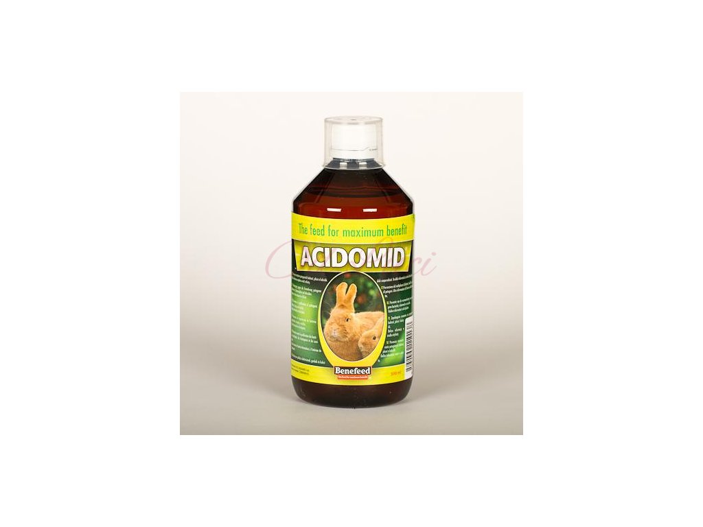 ACIDOMID® je špičkový výrobek moderní koncepce působící nejen proti množení patogenních bakterií, ale velice dobře také tlumí rozvoj a množení nitrobuněčných parazitů jako např. kokcidií. ACIDOMID® však není léčivo, neobsahuje ani kokcidiostatika a nezanechává tak rezidua v organismu. Nemá také ochranné lhůty.