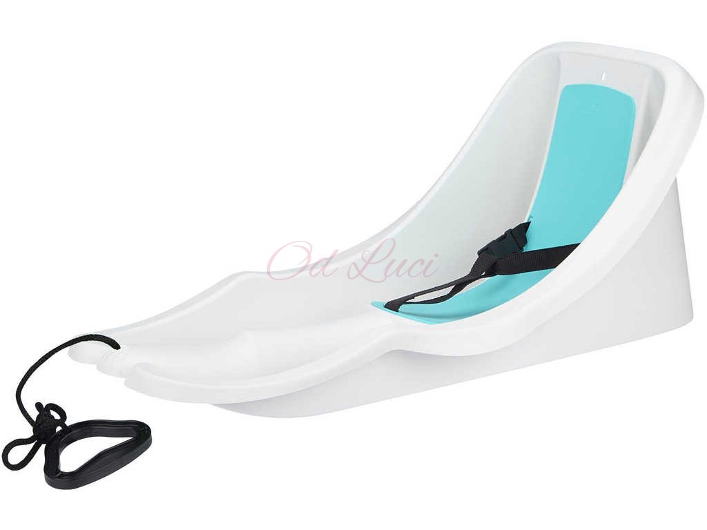 Bob plastový tažný Gizmo Baby rider, v bílé barvě, je určený pro nejmenší děti, na sníh.