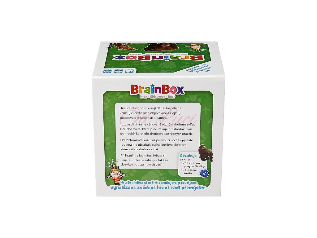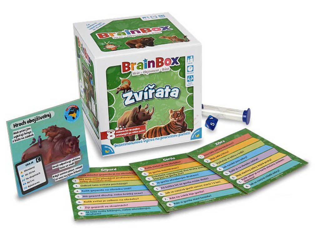 Tento BrainBox, plný zvířat z celého světa, je rodinnou hrou speciálně navrženou pro procvičování paměti a pozorovacích schopností všech zúčastněných hráčů. U každého z 54 zvířat jsou uvedeny důležité údaje,