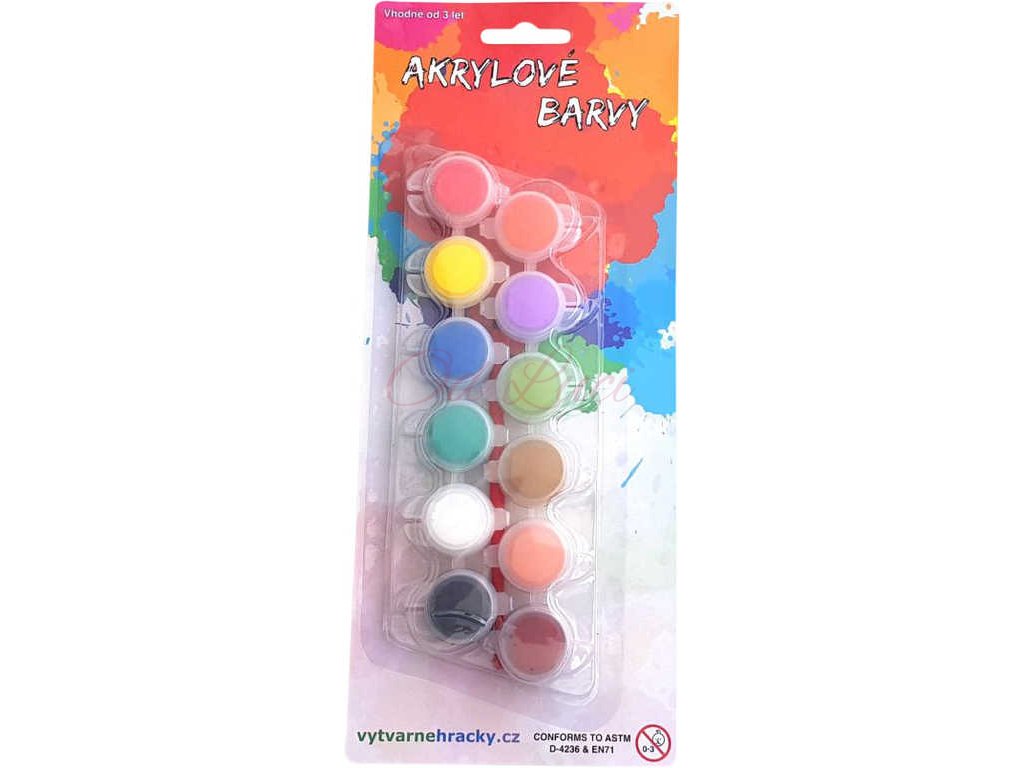 Akrylové barvičky - sada 12ti různých odstínů, na kartě.