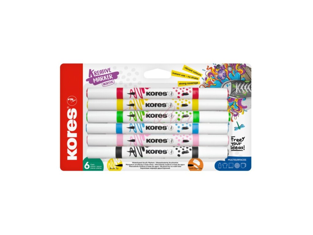 Akrylový popisovač Kreative Marker 2v1 - sada 6 barev