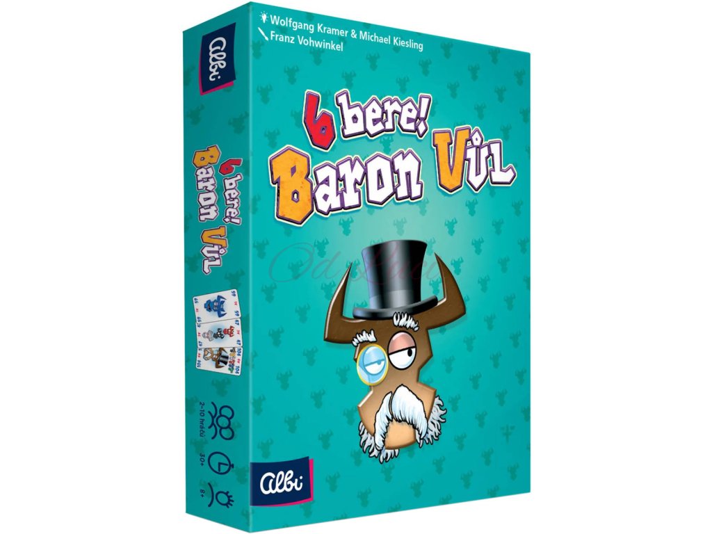 Společenská karetní hra 6 Bere! Baron vůl, od Albi. Trochu jiná verze karetní hry 6 bere!, která přináší nový herní prvek v podobě excentrického Barona Vola.