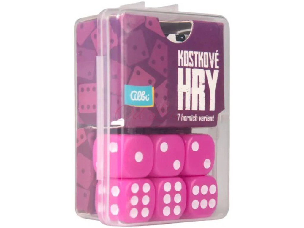 ALBI - Růžové (fialové) kostkové hry - Tato mini sada kostkových her obsahuje 7 různých herních variant. V uzavíratelném cestovním balení najdete podrobný návod, jak si hry zahrát.