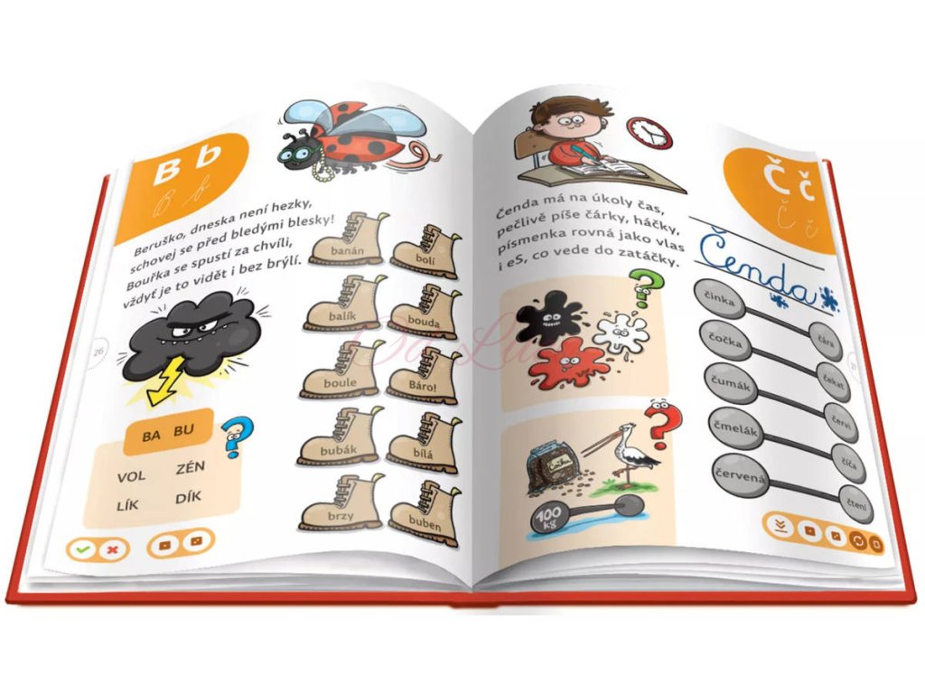 Každé z písmen české abecedy vidí děti ve všech tiskacích i psacích podobách. Jednotlivým samohláskám a souhláskám je věnován vždy ucelený blok zábavných úkolů, které podporují procvičení i upevnění výuky čtení. Děti od 6 let si postupně osvojí znalosti všech písmen a následně jsou schopné číst slova různých obtížností. Díky elektronické tužce se mohou učit interaktivně a naposlouchat správnou intonaci. Učebnice je vhodná také pro domácí vzdělávání a zábavné procvičování čtení. Kniha obsahuje přes 3 000 zvukových stop.