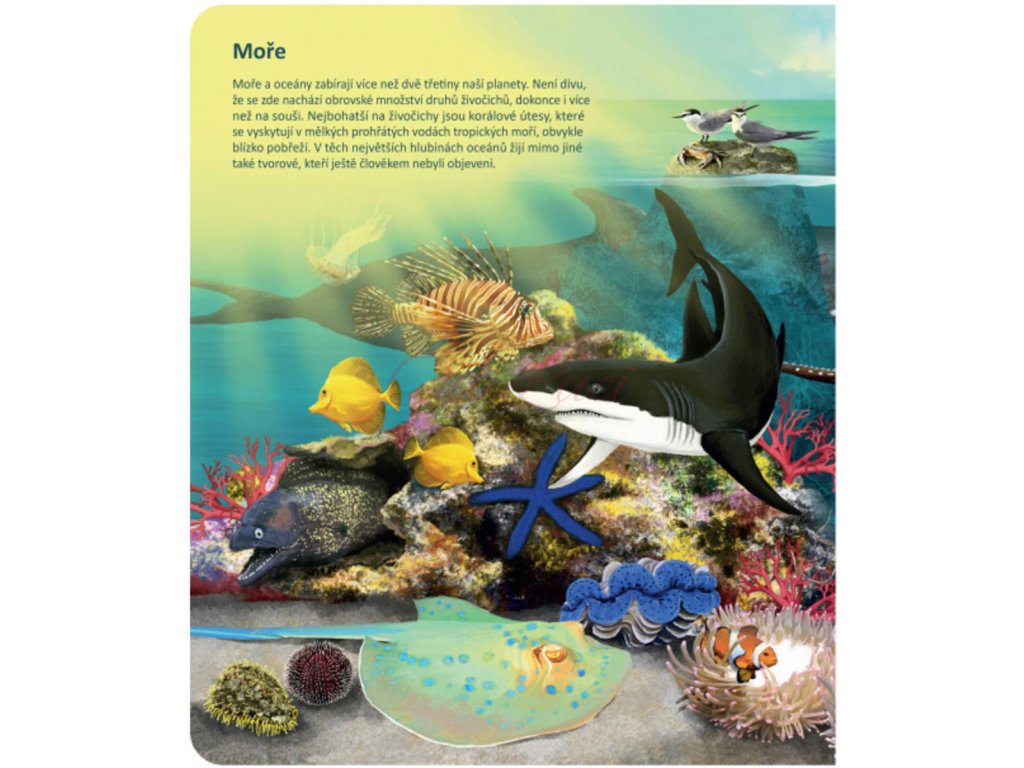 Ponořte se do světa zvířat! Seznamte se se zvířaty ze všech koutů světa a zjistěte, jaké zvuky vydávají, čím se živí nebo čím jsou jedinečná. Kniha vás tematicky provede osmi různými prostředími z naší planety, jako je les, savana, poušť, moře a další. Na každé straně se dozvíte, jaká zvířata v daném prostředí žijí, jak se jmenují, jaké zvuky vydávají a čím jsou zajímavá. Své znalosti si pak můžete ověřit pomocí zábavných kvízů, které jsou vždy rozděleny do tří kategorií: najdi zvíře podle názvu, najdi zvíře podle zvuku, najdi zvíře podle zajímavosti. Kniha je namluvena známým českým hercem Otakarem Brouskem ml. Obsahuje přes 900 zvuků a textů. Kniha vznikla ve spolupráci s Českým rozhlasem.