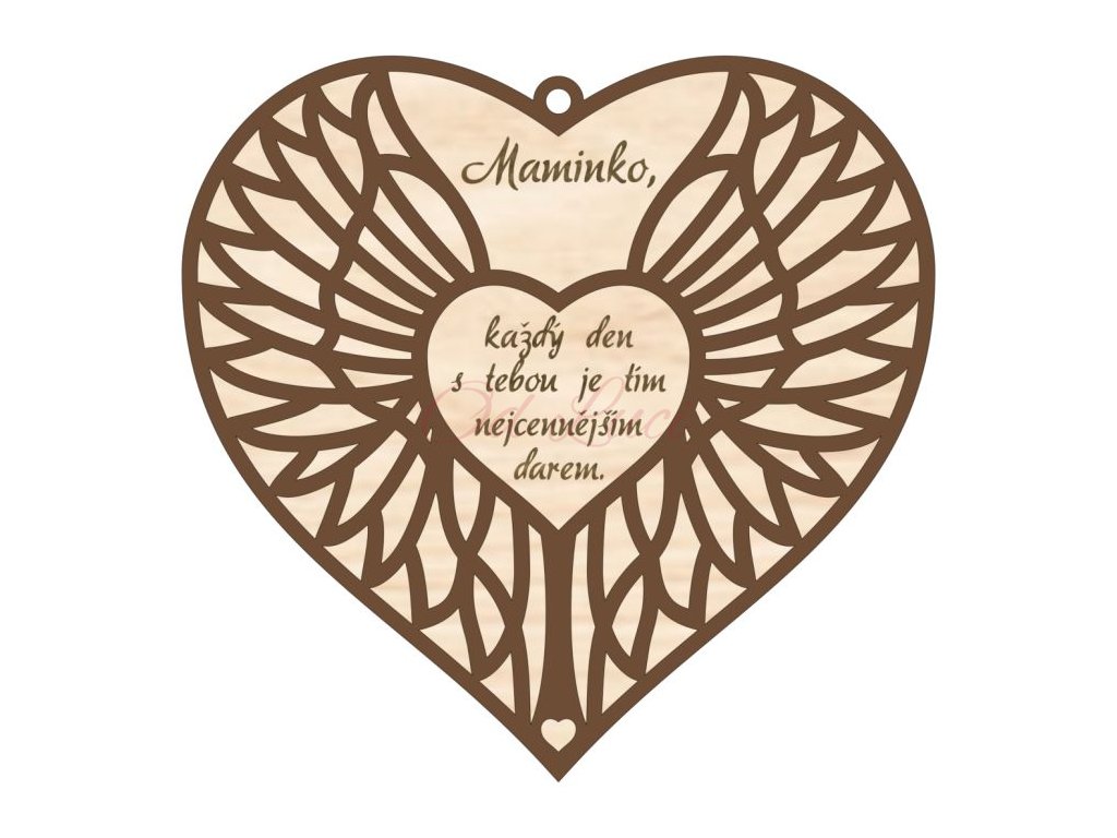 Andělské srdce pro maminku – dřevěná dekorace s andělskými křídly ✨
