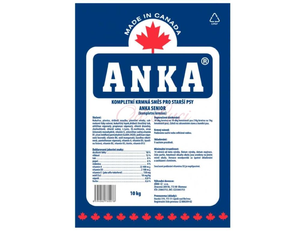 Kompletní krmivo pro psy staršího věku. Tato speciální výživa dodává redukovaný protein pro zajištění správné funkce ledvin a má sníženou kalorickou hodnotu potřebnou k prevenci obezity. Nižší obsah minerálů v ANKA SENIOR znamená menší zátěž pro organismus. Na druhé straně zvýšený obsah vitaminů a vynikající stravitelnost zajišťují lepší zdravotní stav a tím i prodloužení života Vašeho věrného přítele.