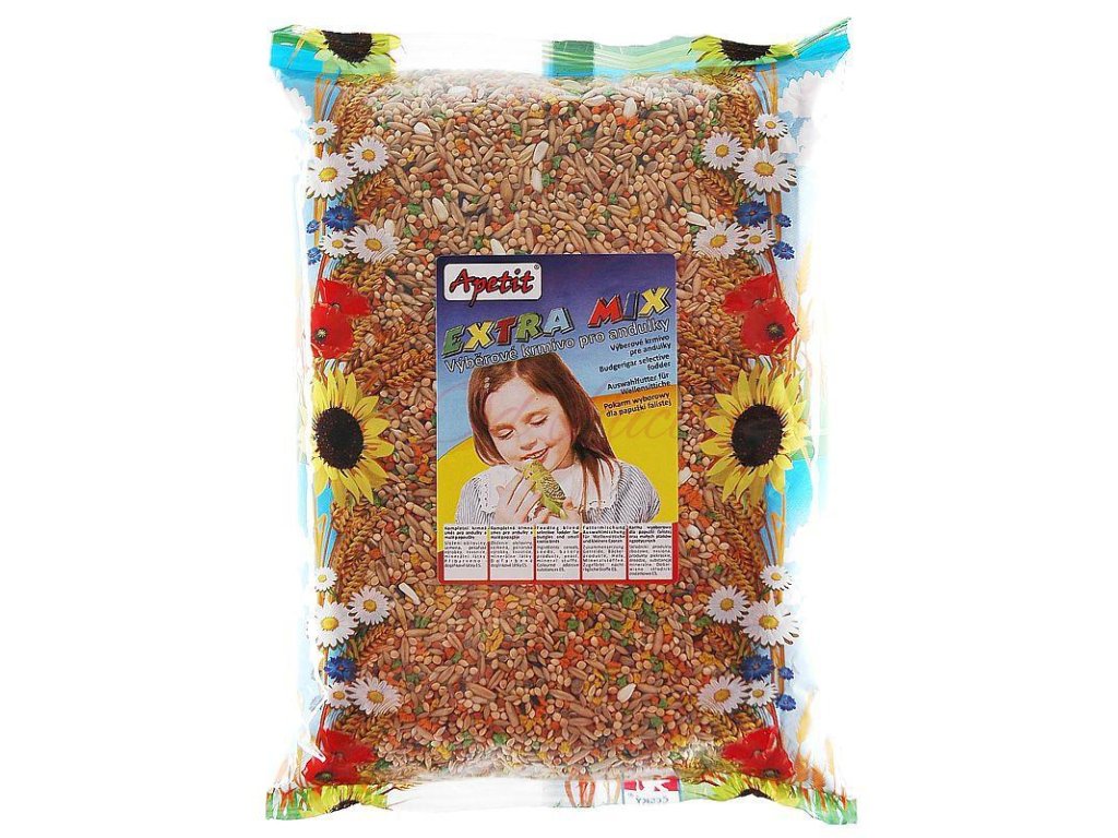 Složení: niger, mrkvové vločky, biskvit, extrudované obilniny, semenec, cardi, proso zelené, proso červené, oves nahý, lesknice, proso žluté