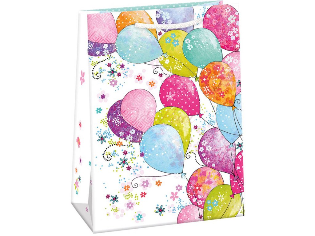 Argus papírová dárková taška standard s háčkem a originálním designem Nafukovací balonky. Velikost 23 x 32 x 12,5cm.