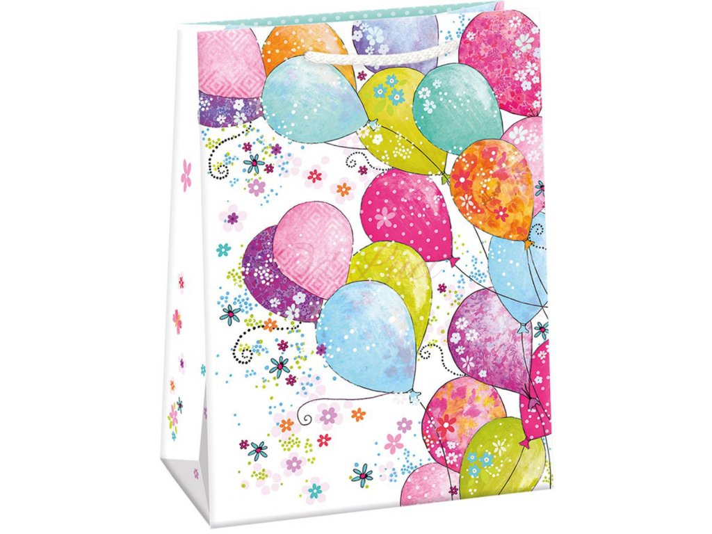 Argus papírová dárková taška standard s originálním designem Nafukovací balonky. Velikost 23 x 32 x 12,5cm.