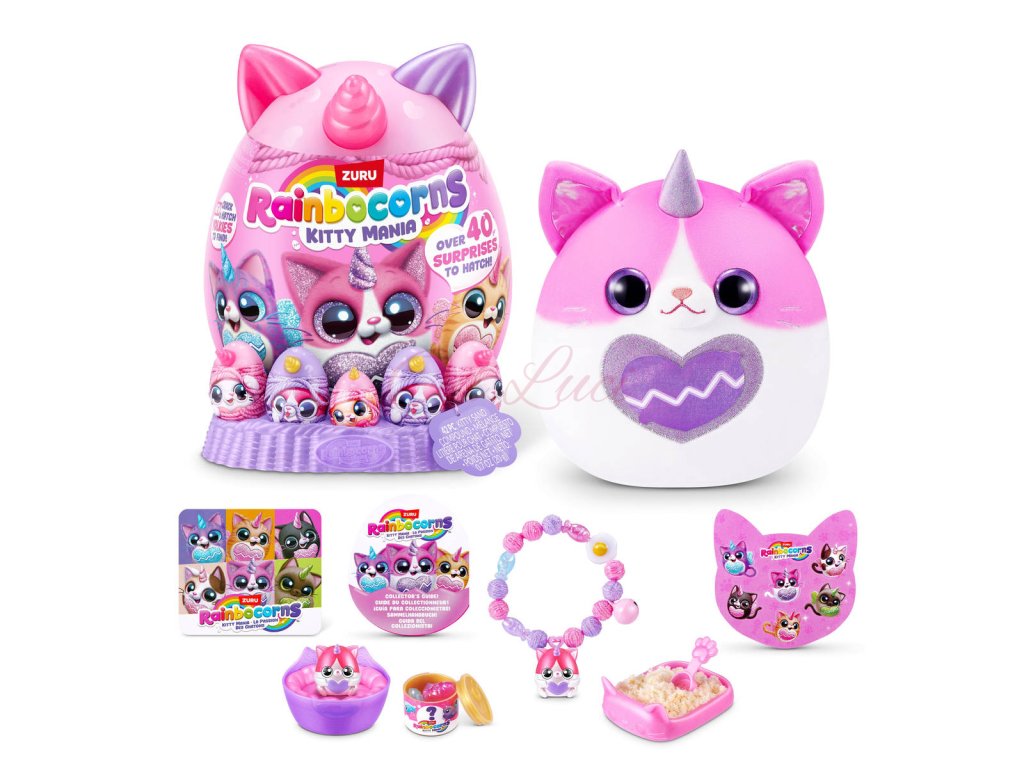 Rainbocorns Kitty Mania přináší ještě více kočiček a ještě více překvapení! V kouzelném světě Rainboville na vás čekají noví chlupatí kamarádi. Rozbalte vajíčko a objevte toho nejroztomilejšího, nejměkčího a nejpřítulnějšího plyšového mazlíčka.