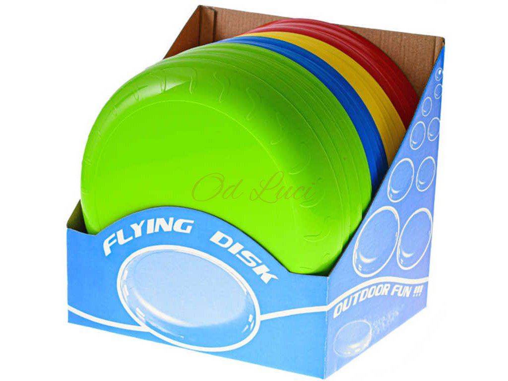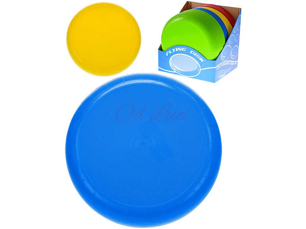 Barevný létající talíř z plastu pro venkovní hru frisbee, disk na házení, ve čtyřech barevných variantách. Díky svému aerodynamickému tvaru skvěle plachtí vzduchem a jednoduše se chytá.