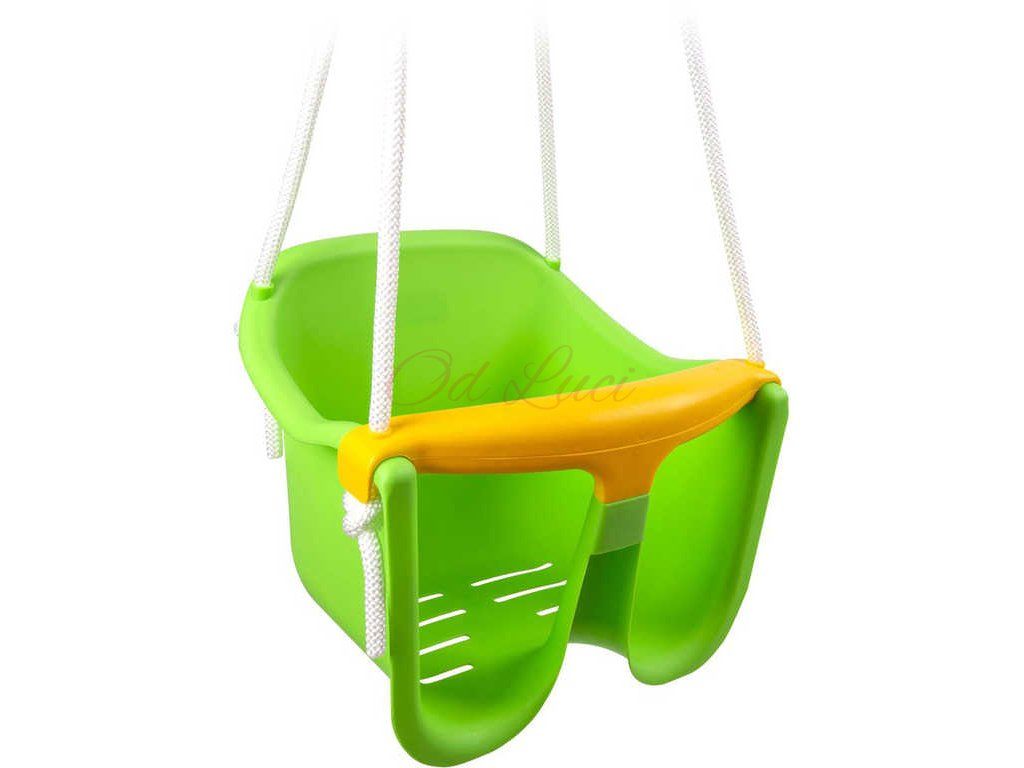 Tato plastová zelená houpačka pro nejmenší děti, s bezpečnostní zábranou, je vzhledem ke své konstrukci určena dětem již od 12 měsíců. Jednoduchý systém zavěšení je během chvilky připraven. Vyrobeno