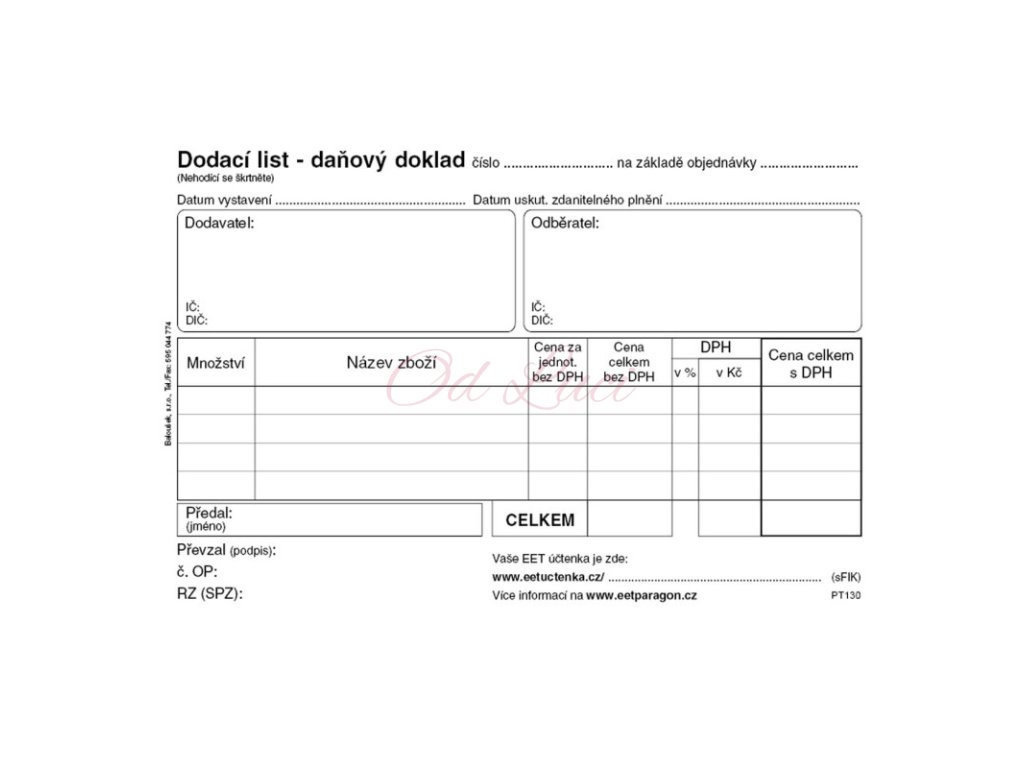 Dodací list daňový doklad Baloušek A6 / 50 listů / NCR / PT130, samopropisující