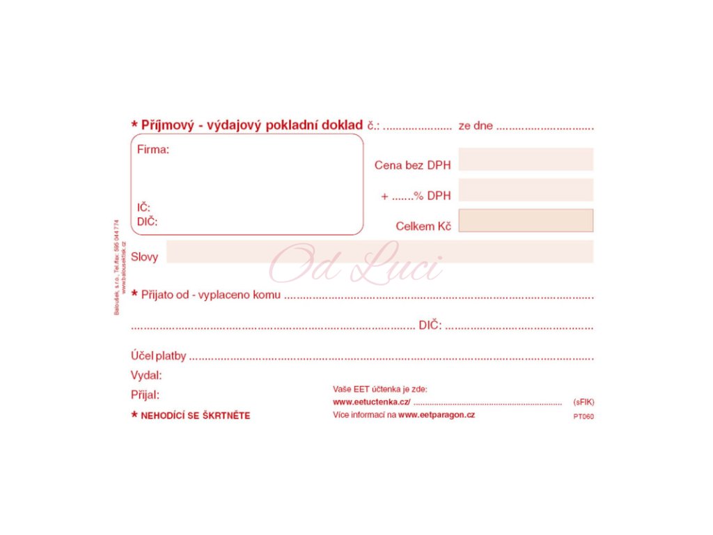 Univerzální příjmový a výdajový pokladní doklad Baloušek A6 / nečíslovaný / 50 listů / NCR / PT060, samopropisující