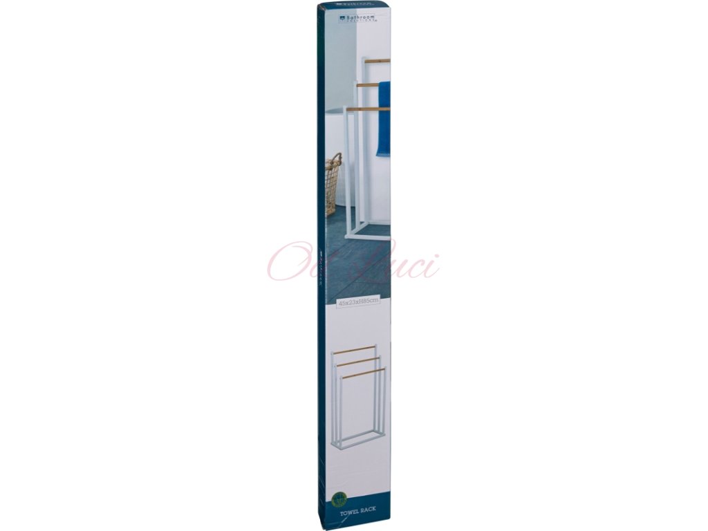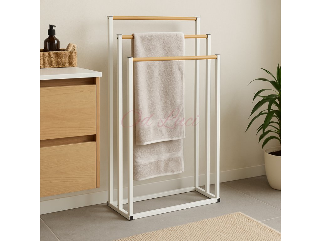 BATHROOM SOLUTIONS Věšák na ručníky kovový bílý s bambusem KO-C80653870
