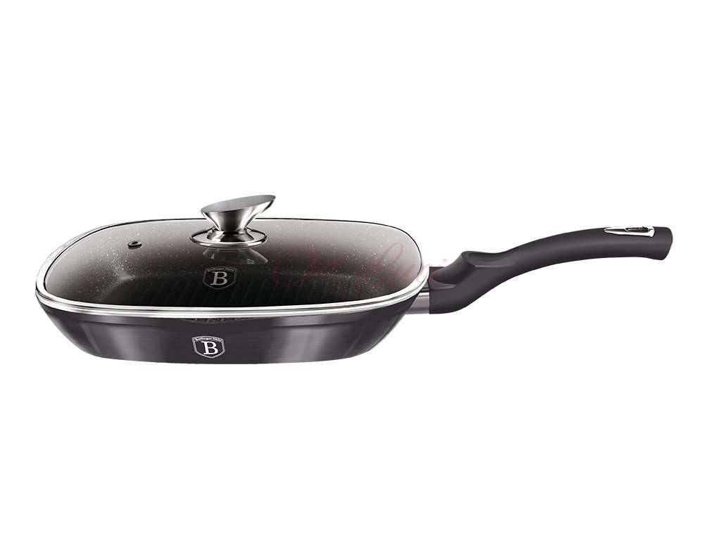 BERLINGERHAUS Pánev grilovací s mramorovým povrchem a poklicí 28 cm Carbon PRO Line