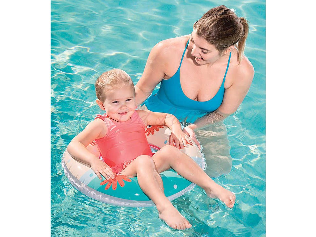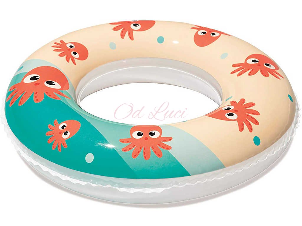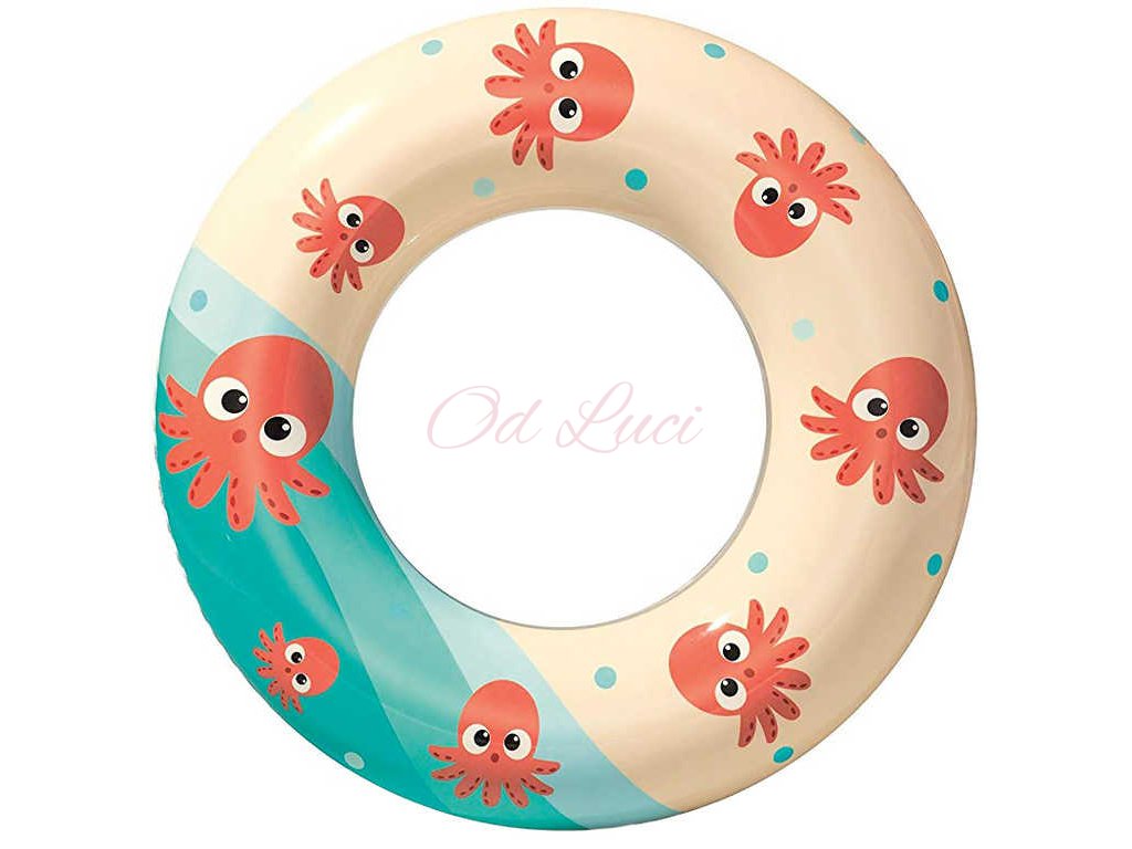 Nafukovací kruh na plavání do vody, s potiskem mořský svět, ve dvou variantách provedení. Vyrobeno z odolného, předem testovaného vinylu. Usnadněte Vám i Vašemu dítěti plavání. S plavacím kruhem získávají děti jistotu a odvahu. Pobyt ve vodě pro ně bude zábavný a zároveň i bezpečný.