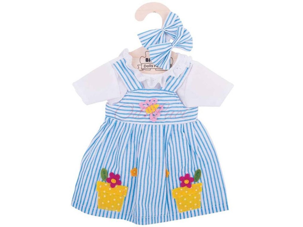 BIGJIGS TOYS Šatičky modré pruhované obleček pro panenku set s ramínkem