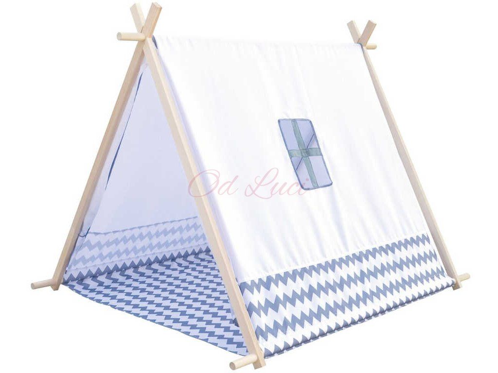 Dětský stan na hraní. Obsahuje vzdušné okénko, otevřený závěs dveří a podlahu. Plachta domečku je vyrobena ze 100% polyesteru a konstrukce ze dřeva. Stan přináší do života dětí spoustu zábavy,