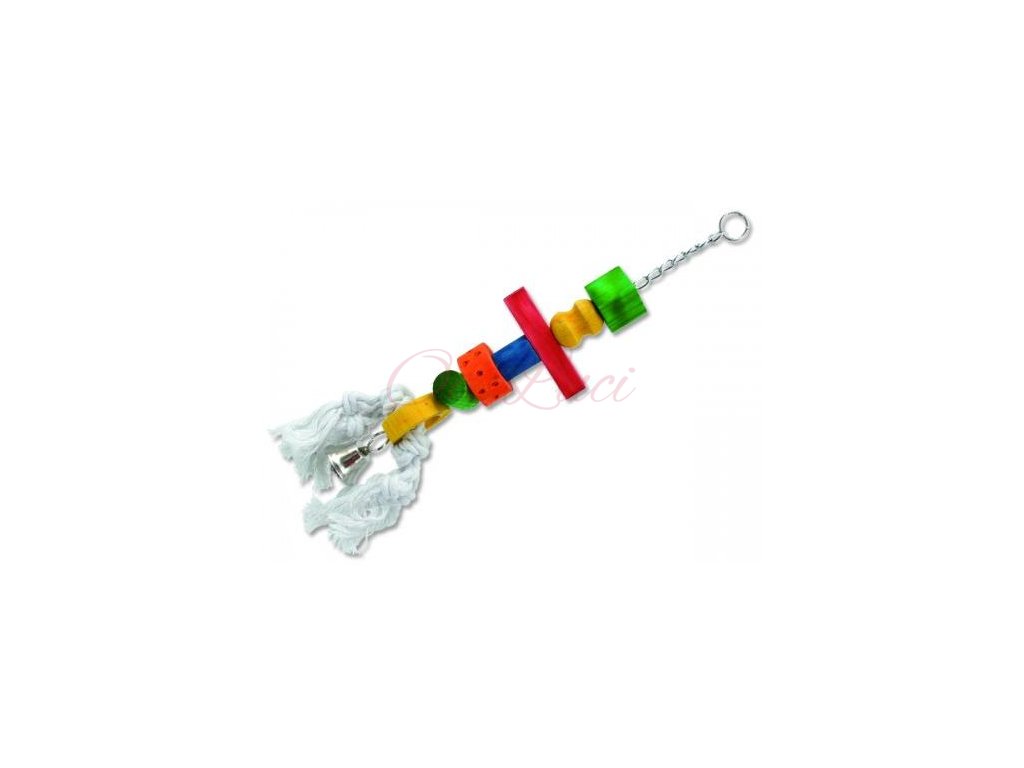 BJ Ptačí hračka s rolničkou závěsná dřevo-provaz 9×50cm