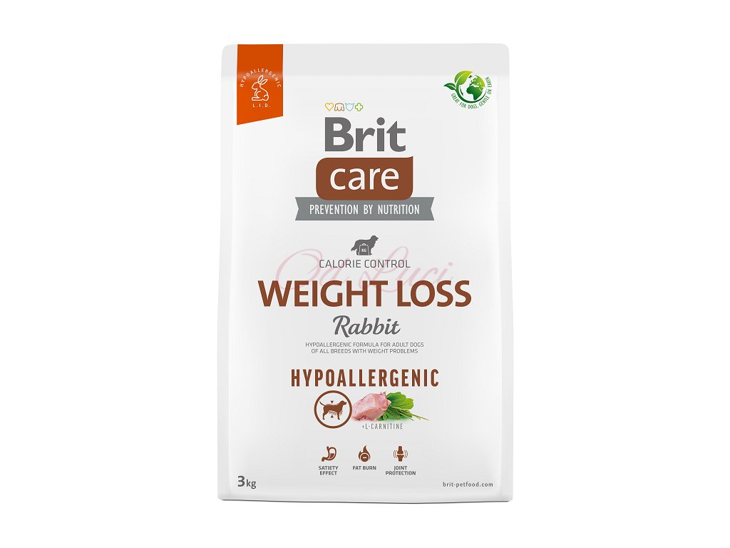 Superprémiové hypoalergenní krmivo s jediným zdrojem živočišného proteinu speciálně navržené pro psy s potřebou snížit tělesnou hmotnost. Snížený obsah tuku a vysoký obsah dietetického proteinu z králíka pomáhají udržet optimální váhu. L-karnitin zrychluje metabolismus a pomáhá spalovat tuk. Psyllium udržuje pocit nasycení a pomáhá bránit přejídání. Receptury jsou obohaceny o probiotika pro správnou rovnováhu střevní mikroflóry a ostropestřec, který podporuje činnost jater, čistí organismus a zbavuje jej škodlivých toxinů.