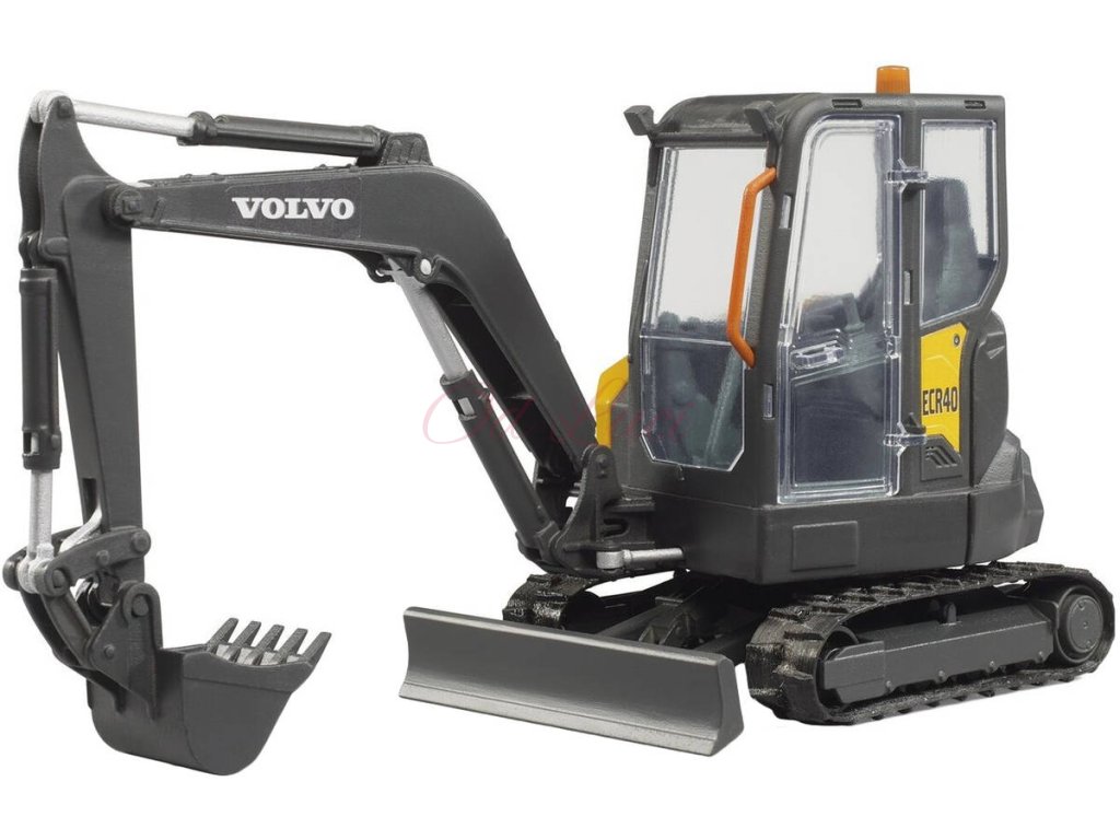 Mini rypadlo Volvo ECR40 se vyznačuje vysokou uživatelskou přívětivostí a kompaktností s krátkým poloměrem otáčení. Navzdory svým kompaktním rozměrům je vhodný pro širokou škálu prací. Rameno bagru lze také otočit do strany, což jeho použití činí ještě flexibilnějším. Díky pásovému podvozku nejsou obtížné terénní podmínky, a to ani v pískovně, překážkou. Radlice poskytuje větší stabilitu při použití na sypkém terénu a lze ji použít pro jednoduché vyrovnávací práce. Stejně jako originál je kabina prosklená a vybavená otevíracími dveřmi a tělo bagru lze otáčet o 360° – stejně jako u skutečného stroje. Výškově nastavitelná, spouštěcí, sklápěcí a uzamykatelná radlice. Gumové jízdní pásy. Vyrobené z vysoce kvalitních plastů, jako je ABS. Lze použít pro hru uvnitř i venku.