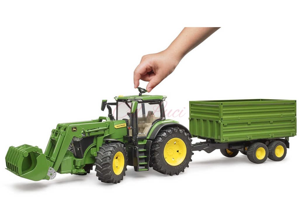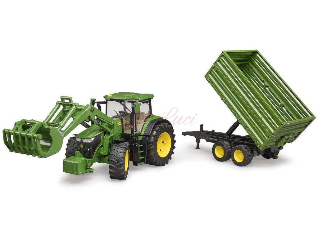 BRUDER 03155 Traktor John Deere 7R 350 set s čelním nakladačem a přívěsem