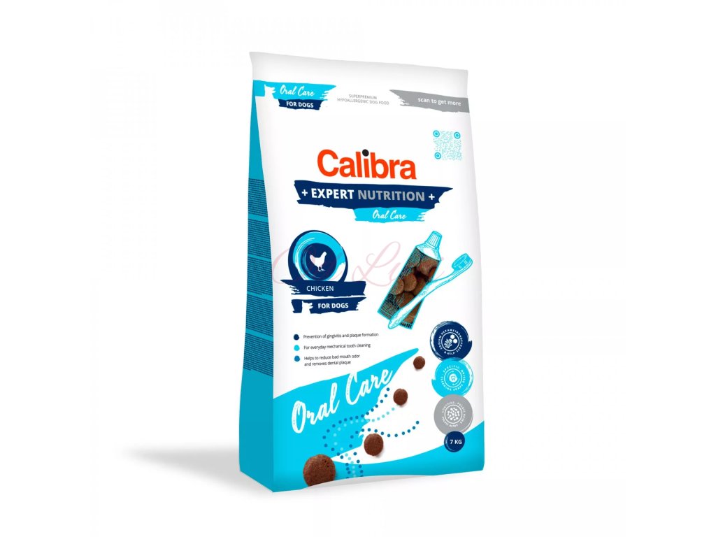 Calibra Dog Expert Nutrition Oral Care jsou hypoalergenní granule se specifickým tvarem a strukturou, které umožňují přirozeně pravidelné mechanické čištění zubů. Je to kompletní krmivo pro dospělé psy, které pomáhá redukovat vznik zubního plaku, jeho mineralizaci, tedy ukládání zubního kamene. Zároveň působí preventivně ohledně zánětu dásní a redukuje zápach z tlamy zvířete.