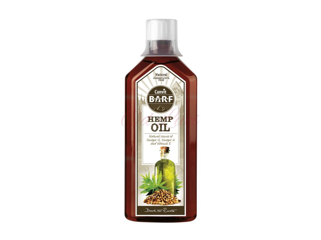 Konopný olej Canvit BARF se získává velmi šetrným lisováním konopných semen za studena. Díky šetrnému zpracování se obsažené účinné látky lépe vstřebávají a olej má velmi vysokou nutriční hodnotu. Olej z konopných semen vyniká unikátně vybalancovaným poměrem omega 6 ku omega 3 nenasyceným mastným kyselinám 3:1, což je ideální poměr pro potlačení zánětlivých procesů v těle. Konopný olej obsahuje 22 % omega-3 mastných kyselin ALA (kyseliny alfa-linolenové), 55 % omega-6 mastných kyselin ALA a GLA (linolové a gama-linolové), bílkoviny, antioxidanty, vitamín E, fytosteroly, karoteny, chlorofyl a kanabidioly.