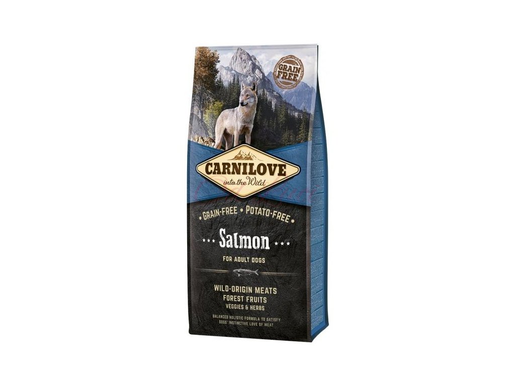 Složení: lososový protein 25%, moučka z lososa 22%, brambory, moučka z bílých ryb 15%, kuřecí tuk (přirozeně chráněno tokoferoly), bramborový protein, sušená jablka (zdroj fruktooligosacharidů), lososový olej 3%, hydrolyzovaná kuřecí játra, pivovarské kvasnice, extrakt z bylin a ovoce 300mg/kg (hroznové víno, rozmarýn, kurkuma, citrusové plody a hřebíček), hydrolyzované skořápky korýšů (zdroj glukosaminu), chondroitin sulfát, hydrolyzované kvasnice (zdroj mannan-oligosacharidů), extrakt z juky schidigera, extrakt ze sušených brusinek 50mg/kg, extrakt z granátového jablka 50mg/kg