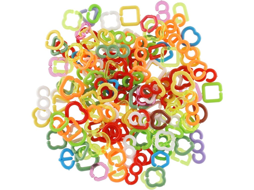 Klasická plastová retro hračka barevná céčka (v mixu různé tvary a barvy) v balení po 150ks v sáčku.