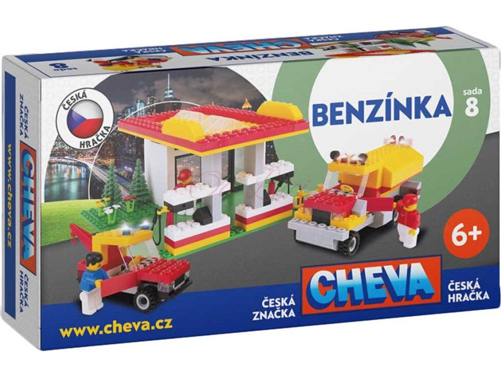Benzínová stanice se skládá z benzínové pumpy, cisterny, odtahového vozidla a personálu. Tato sada stavebnice je jedním z doplňků k základním verzím stavebnice Cheva. Stavebnice Cheva 8 obsahuje jednotlivé kostky