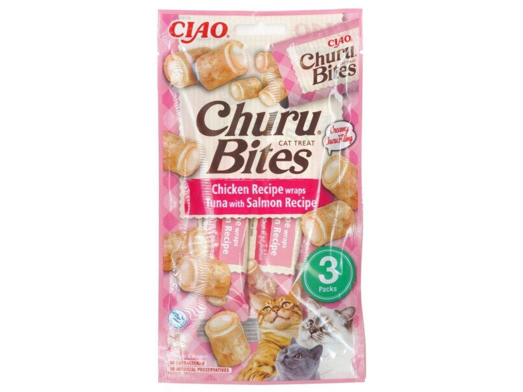 Churu Cat Bites Chicken Wraps & Tuna Salmon Purée 3×10g