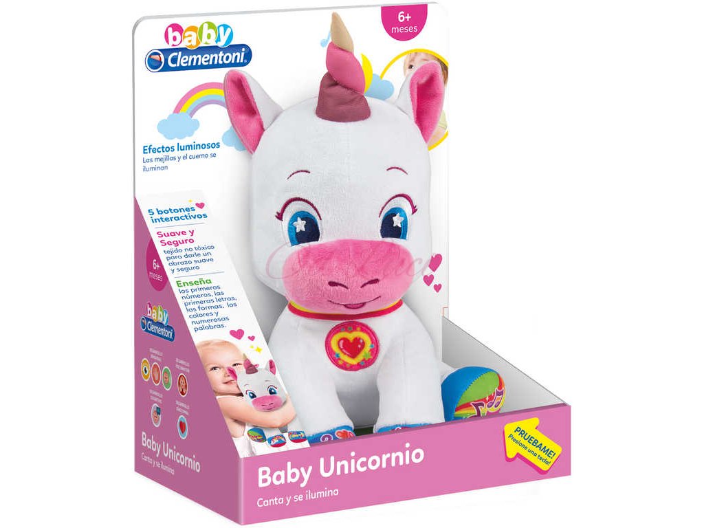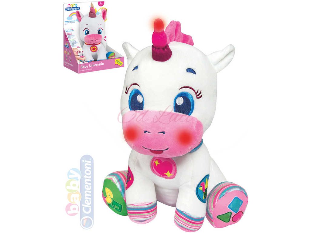 CLEMENTONI Baby jednorožec interaktivní naučný na baterie Světlo Zvuk PLYŠ