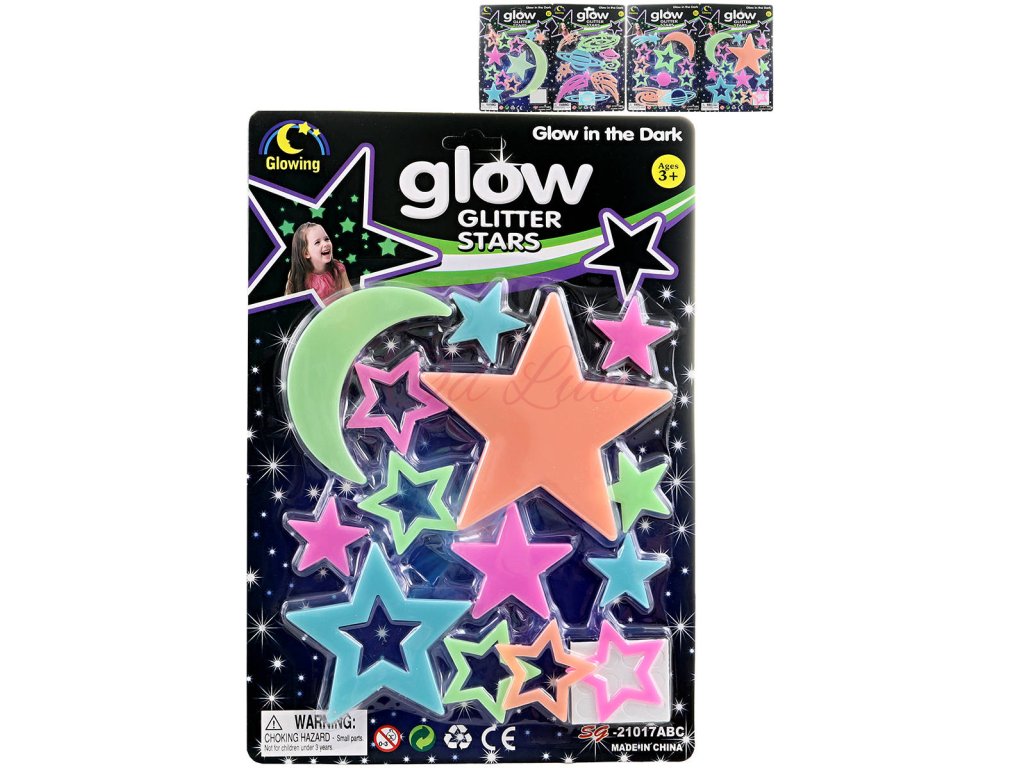 Dekorace noční obloha samolepky hvězdy svítící ve tmě na stěnu 4 druhy