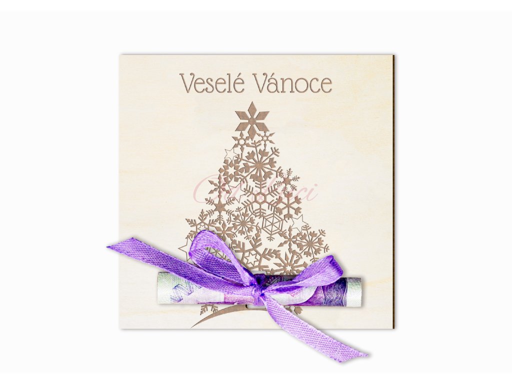 Dřevěné přání umožňuje darovat peníze originální cestou. Bankovky se srolují do ruličky a přichytí provázkem nebo stužkou (není součástí produktu).