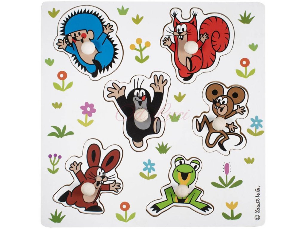 Didaktické vkládací puzzle Krtečka a jeho přátel. Hra učí děti poznávat tvary a pomáhá rozvíjet motoriku rukou. Výrobek splňuje požadavky EU na bezpečnost hraček a je vhodný pro děti od 18 měsíců. Dřevěná vkládačka pro malé děti s úchytkami. Dítě se podle obrysů a tvarů snaží najít správný obrázek (rozvoj představivosti a logického myšlení), a umístit jej do správného otvoru (rozvoj jemné motoriky).