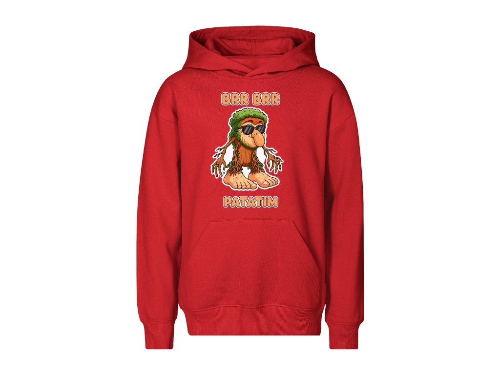 Dětská mikina Brr Brr Patatim patří do bláznivé série Italian Brainrotů, která si hraje s absurdními postavičkami, chytlavými názvy a nadsázkou. Originální motiv podivuhodné postavičky s kořeny, slunečními brýlemi a nápisem „Brr Brr Patatim“ děti okamžitě zaujme a mikina se stane výrazným kouskem jejich šatníku. Je měkká, pohodlná a ideální na každodenní nošení do školky, školy i na volný čas. Díky kvalitnímu materiálu a odolnému potisku zvládne i časté praní.