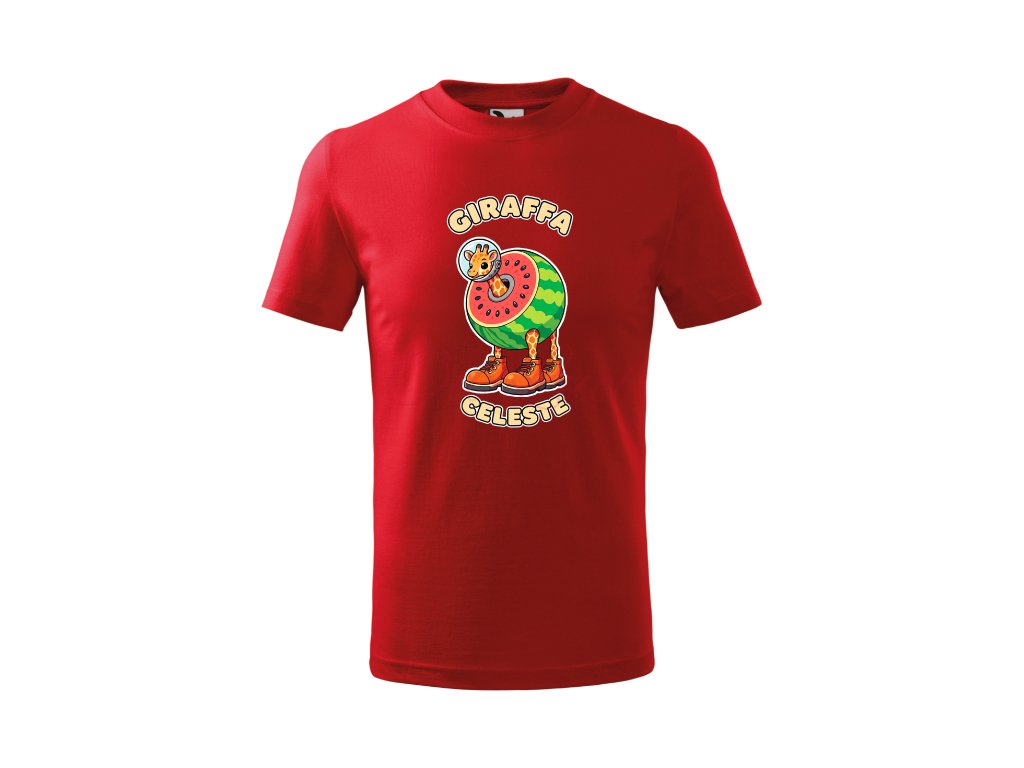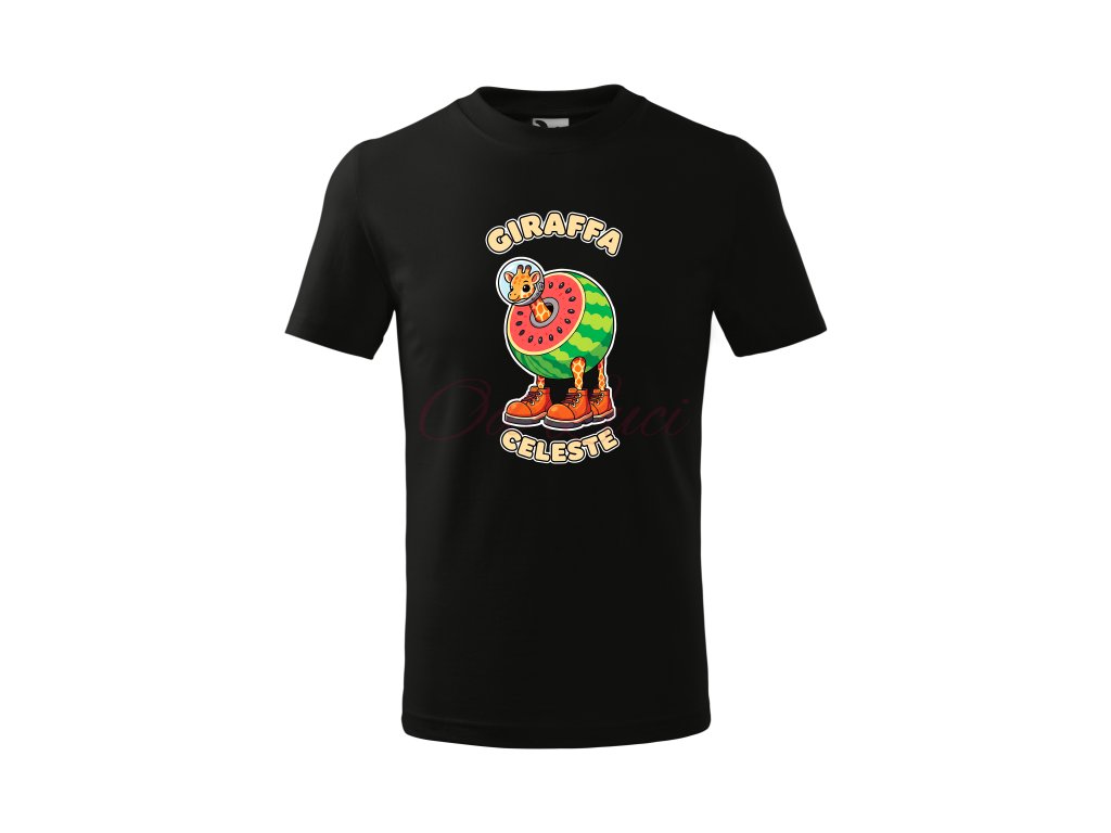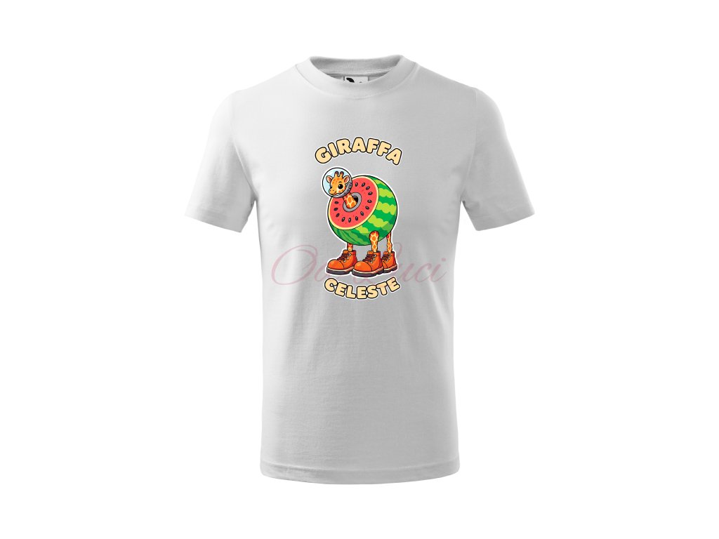 Dětské tričko Giraffa Celeste patří do hravé série Italian Brainrotů, která kombinuje bláznivé nápady, roztomilé postavičky a chytlavé názvy. Originální motiv žirafy s melounovým tělem děti okamžitě zaujme a tričko se rychle stane oblíbeným kouskem na každý den. Je pohodlné, lehké a příjemné na nošení do školy, školky i na výlety. Díky kvalitnímu potisku zvládne i časté praní.