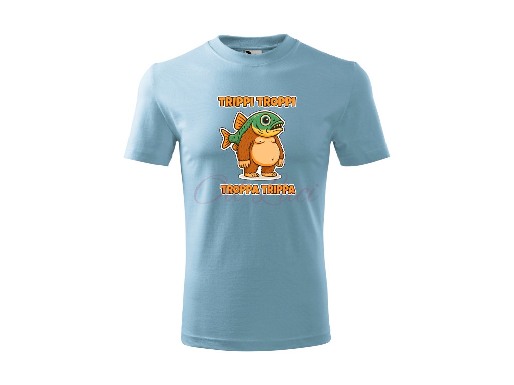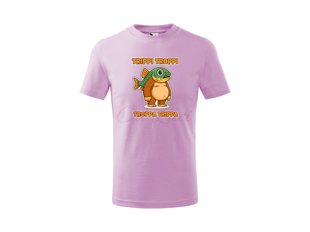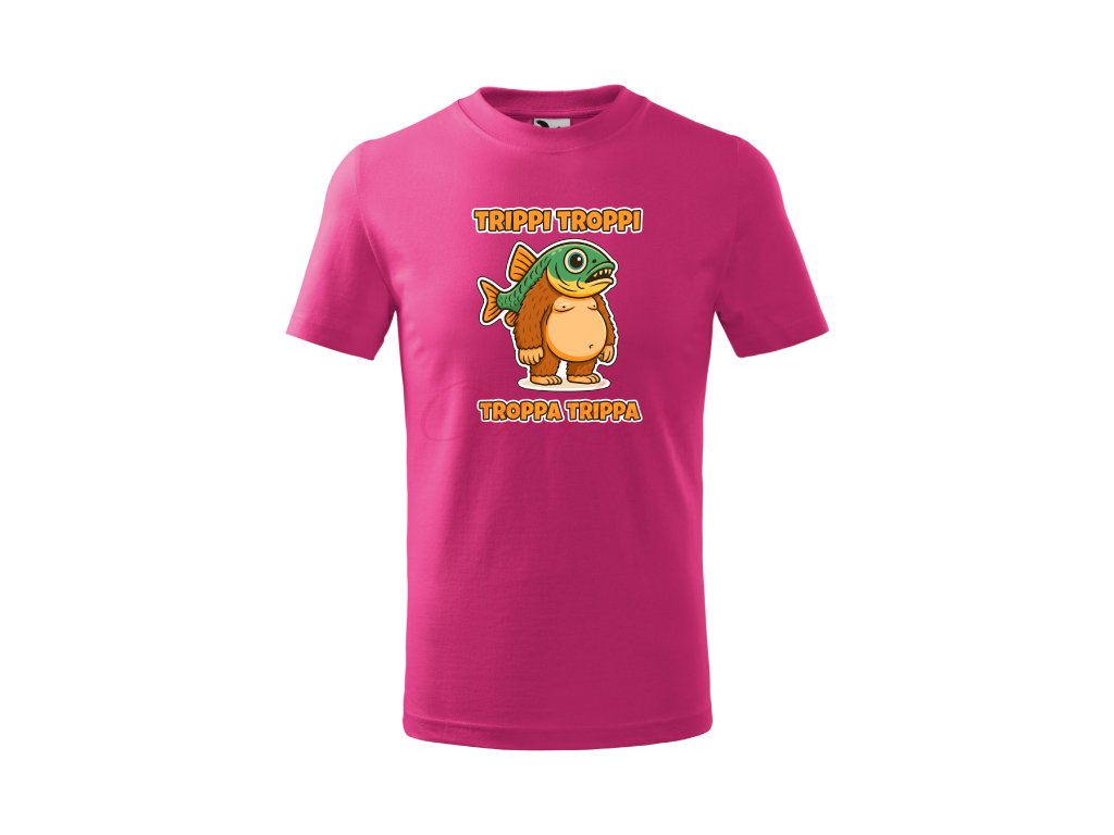 Dětské tričko Trippi Troppi je součástí hravé série Italian Brainrotů, která si zakládá na bláznivých postavičkách a nezaměnitelném humoru. Originální motiv pobaví děti na první pohled a tričko se rychle stane oblíbeným kouskem v jejich šatníku. Pohodlný střih je ideální na každodenní nošení do školy, školky i na volný čas. Kvalitní potisk si dlouhodobě zachovává barvy i při častém praní.