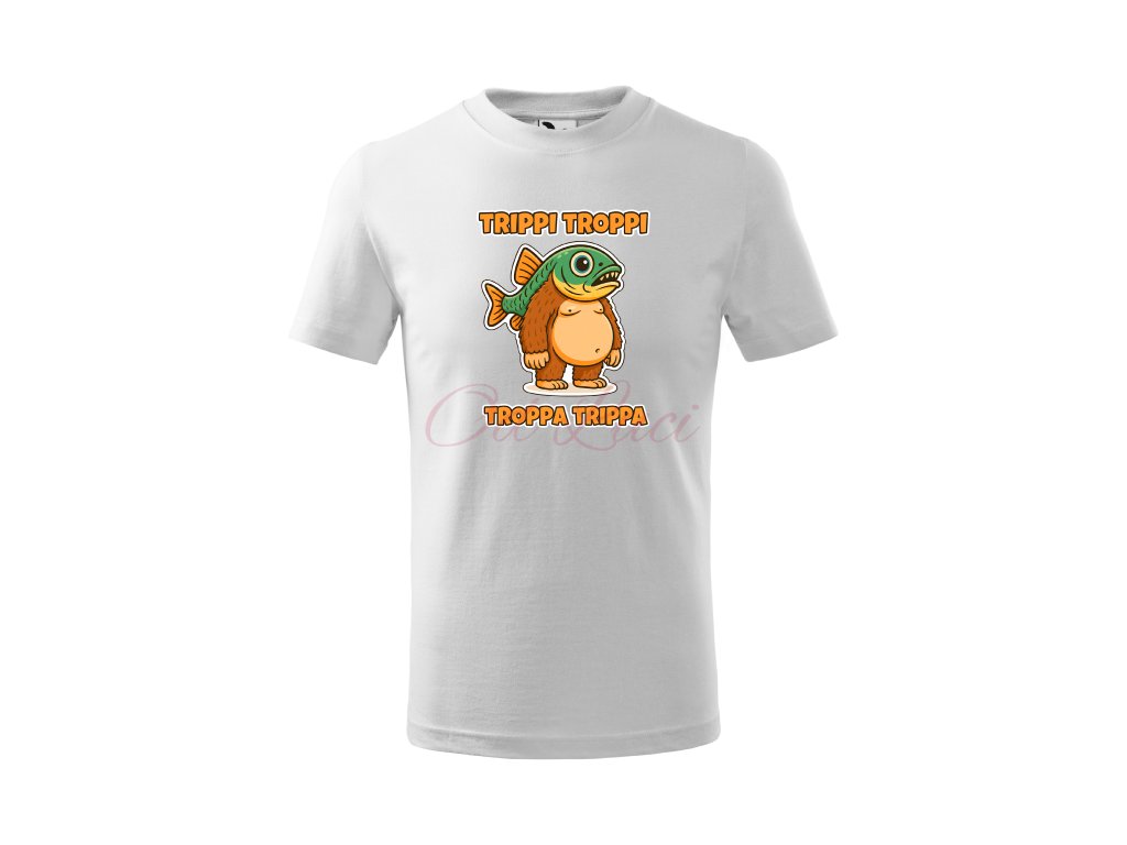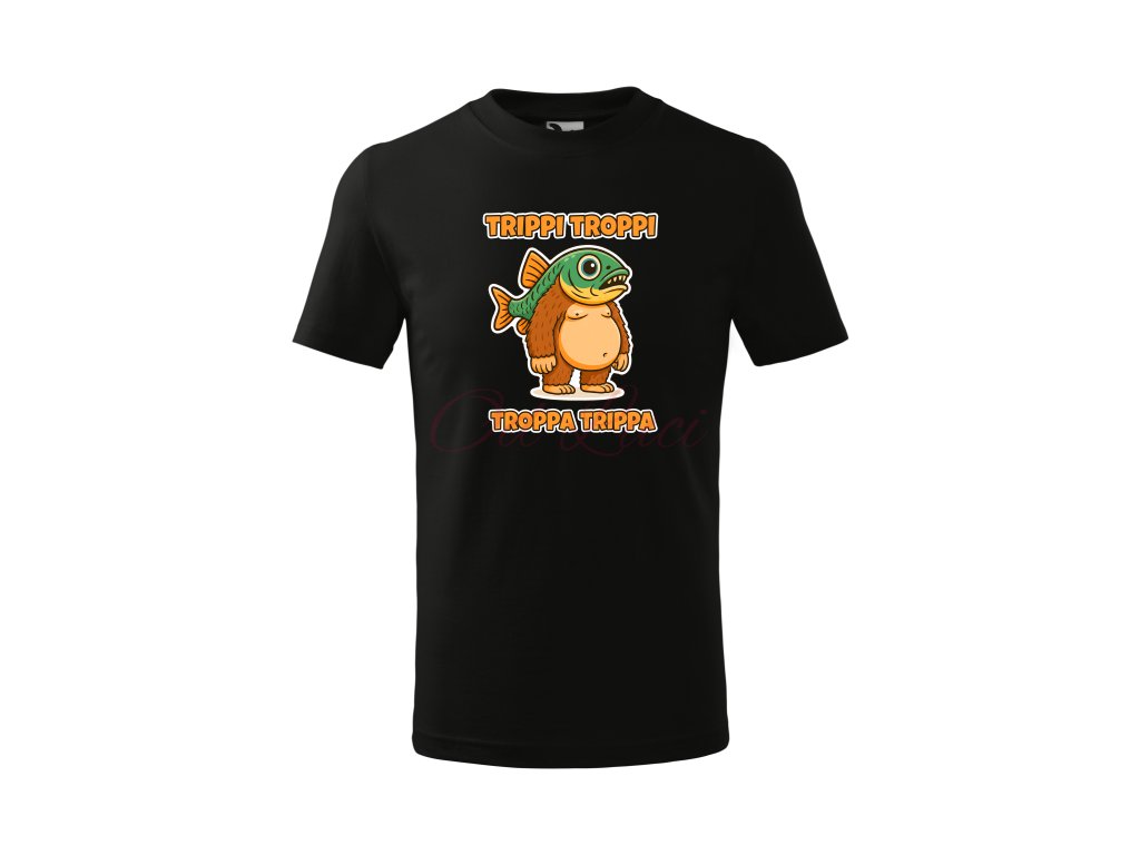 Dětské tričko Trippi Troppi patří do oblíbené série Italian Brainrotů, která kombinuje výrazné motivy, lehkou absurditu a hravou nadsázku. Skvělý tip na dárek pro děti, které mají rády originální a zábavné oblečení.