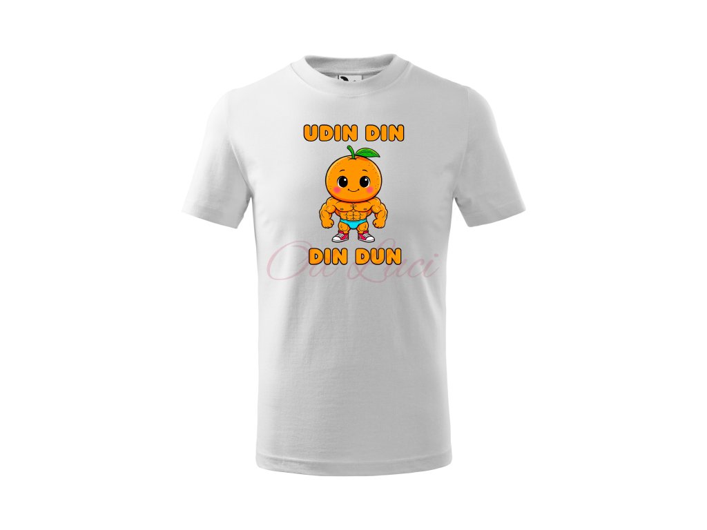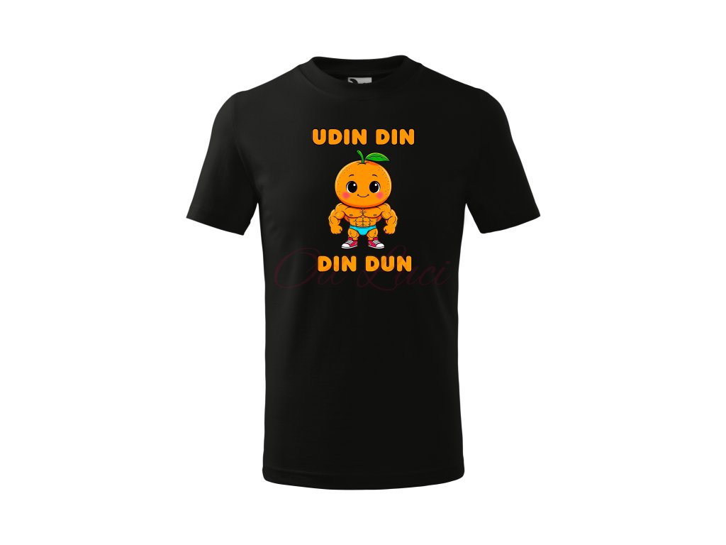 Dětské tričko Udin Din Din Dun je součástí hravé série Italian Brainrotů, která kombinuje humor, barvy a originální ilustrace. Veselý motiv svalnatého pomeranče pobaví na první pohled a dělá z trička ideální dárek k narozeninám, svátku nebo jen tak pro radost.