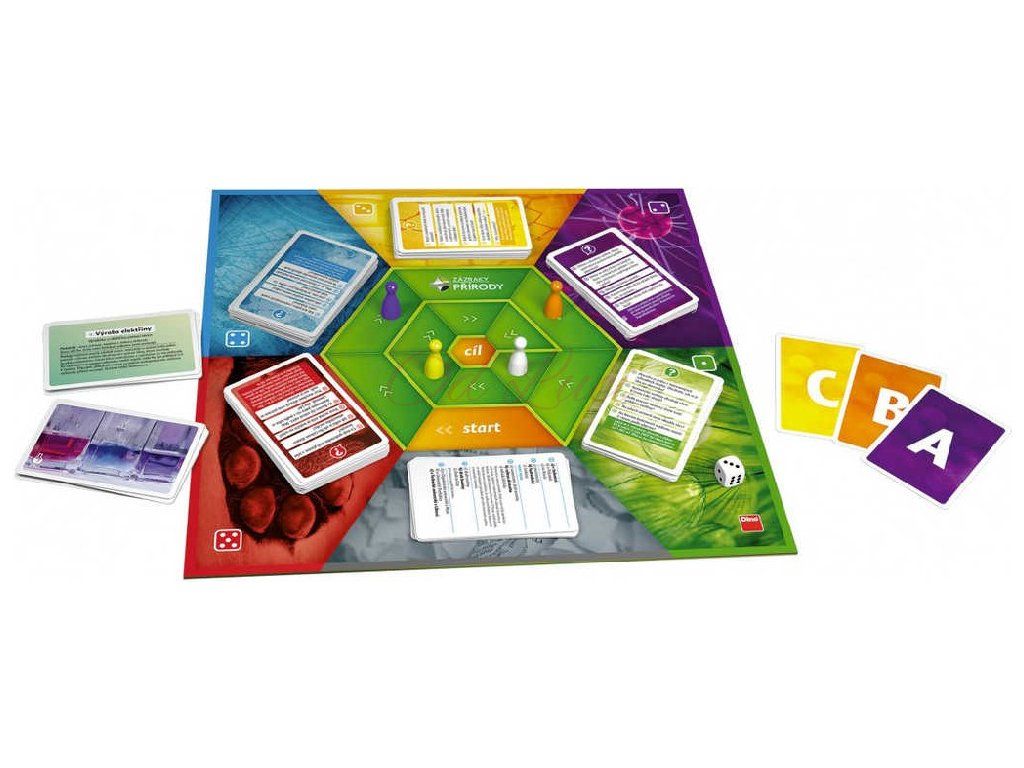 Obsah balení: 200 karet s 1000 otázkami a odpověďmi, 28 karet s experimenty, 12 tipovacích karet, 4 figurky, herní plán, hrací kostka, pravidla