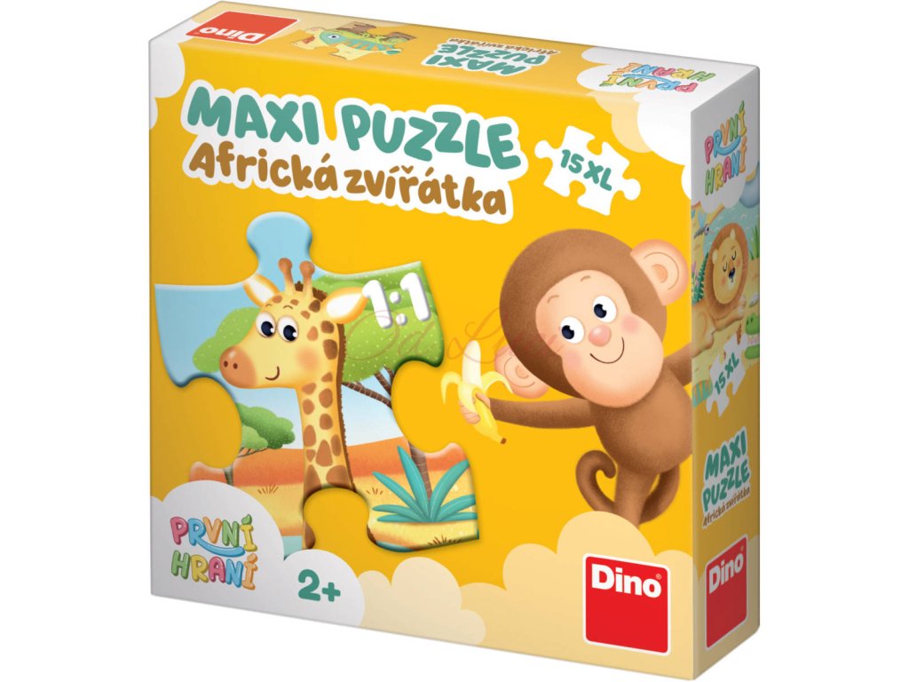 Dino kvalitní baby puzzle z tvrdého kartonu s motivem "První hraní: Africká zvířátka", 15 dílků, velikost 47 x 33cm, pro nejmenší děti. Vyrobeno v Česku.