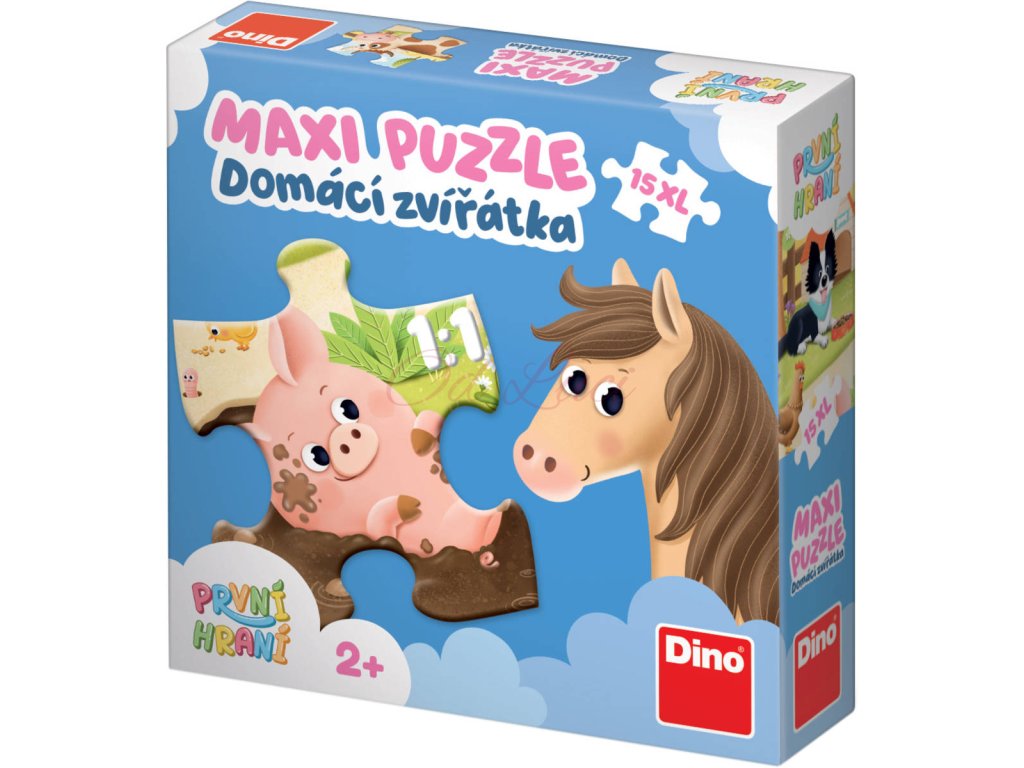 Dino kvalitní baby puzzle z tvrdého kartonu s motivem "První hraní: Domácí zvířátka", 15 dílků, velikost 47 x 33cm, pro nejmenší děti. Vyrobeno v Česku.
