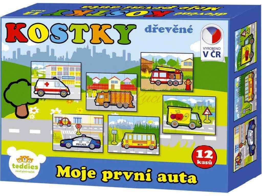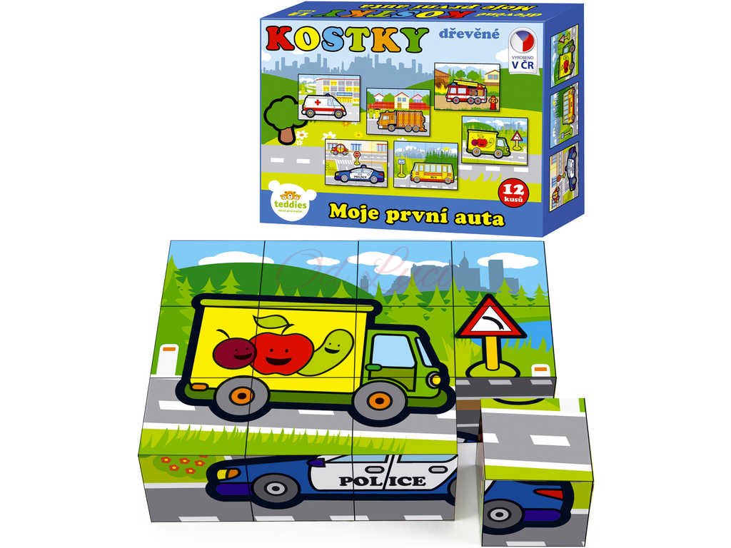 DŘEVO Kostky obrázkové Moje první auta set 12ks *DŘEVĚNÉ HRAČKY*