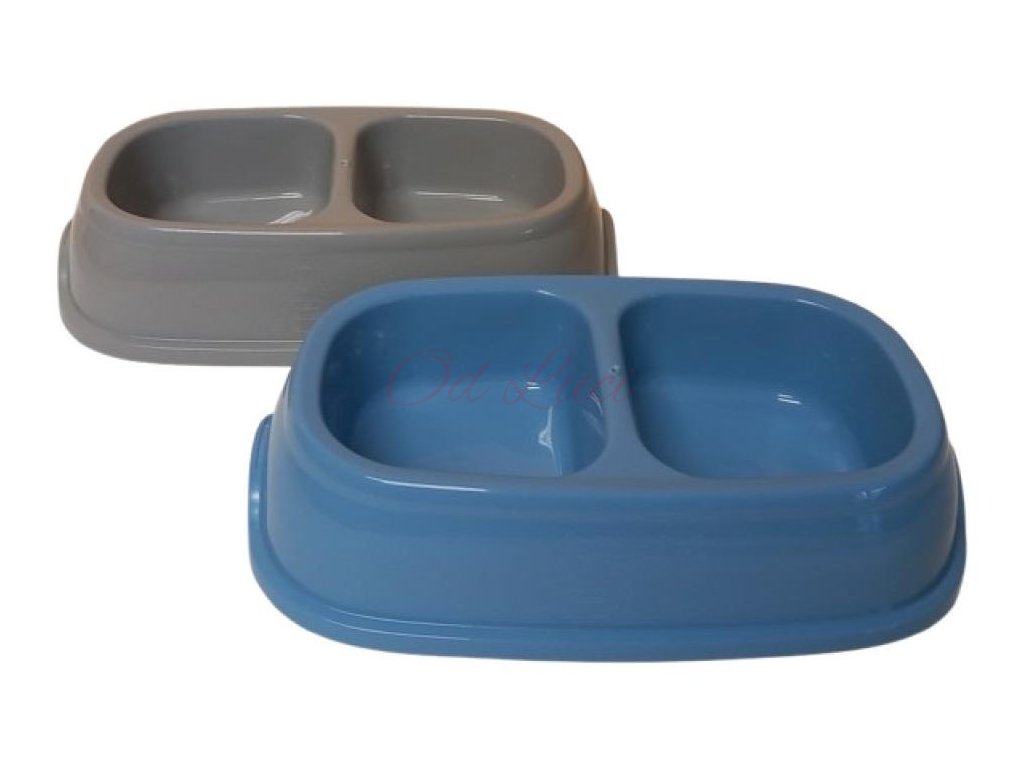 Plastová dvoumiska s gumovými přísavkami proti skluzu. Snadno omyvatelná. Vhodná pro kočky a malé psy.