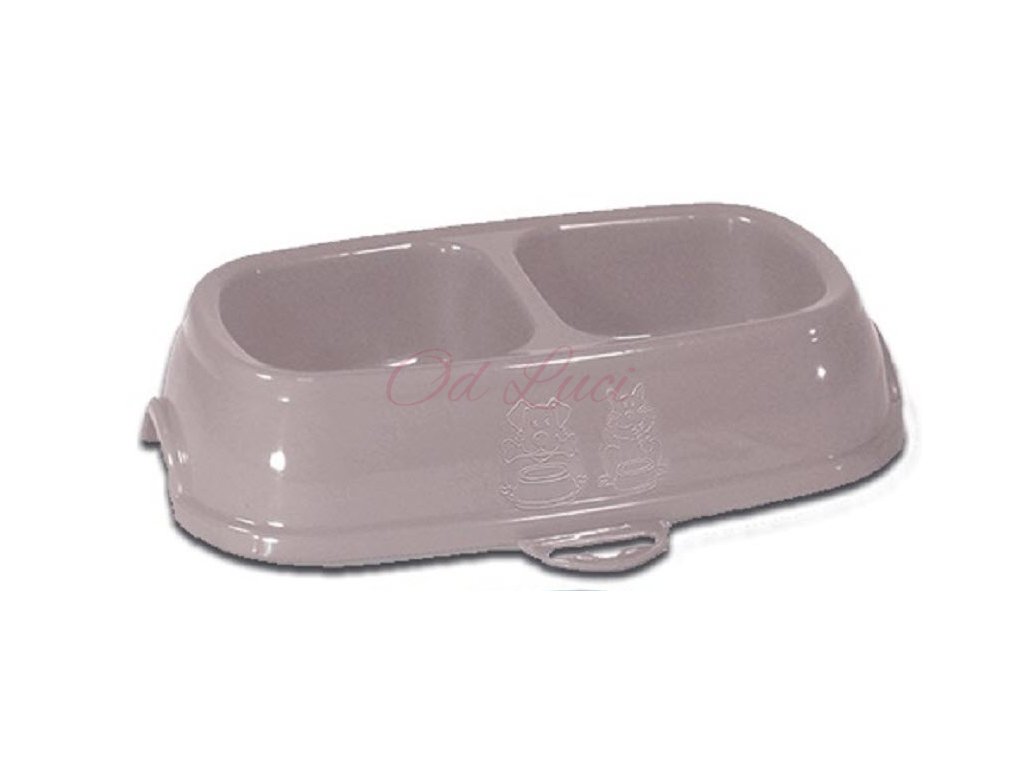 Plastová dvoumiska s gumovými přísavkami proti skluzu, snadno omyvatelná. Vhodná pro kočky a malé psy.